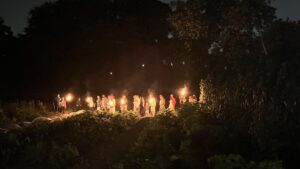 À la tombĂ©e de la nuit, on fait le tour du jardin, torches Ă  la main đŸ”„